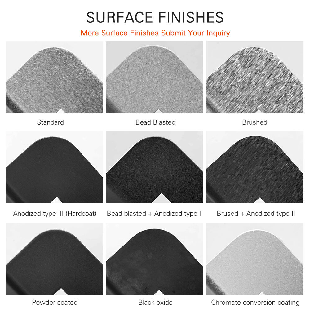 Anodized type III (Hardcoat) Bead blasted + Anodized type II Brused + Anodized type II
