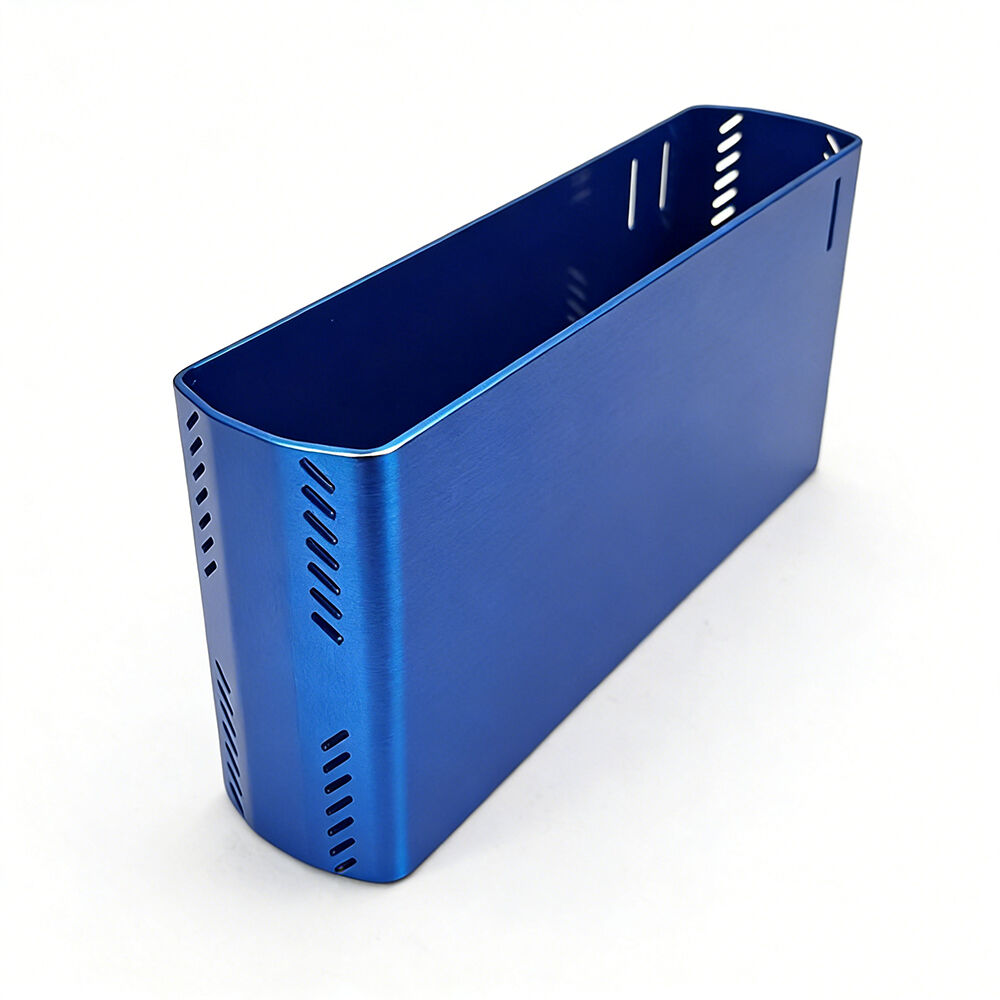 Recipiente Electrónico Personalizado en Aluminio Anodizado e Acero Inoxidable Azul, Estampado, Dobre e Soldadura